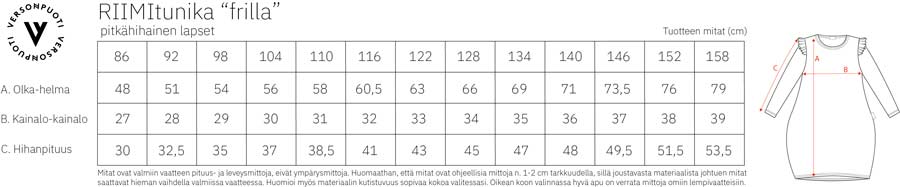 Versonpuodin riimiitunika on frillahihainen tunika lapsille pitkähihaisena. Yhdistele leggareiden tai muiden mukavien housujen kanssa.